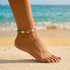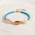 צמיד רגל לגונה הוא התמצית של חופש וסטייל בוהו-שיק. הוא משלב שורה של חרוזי טורקיז בגוון אוקיינוס, שני צדפי קאורי (Cowrie) טבעיים לבנים, ובמרכז צדף מוזהב בולט המודגש בנגיעות של חרוזי זהב זעירים. העיצוב הצבעוני מקפיץ כל לוק קיצי ומשתלב נהדר גם לבד וגם בשכבות עם צמידי זהב.