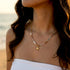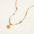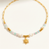 שרשרת זריחה משלבת בין חוליות זהב עדינות לאבני חן קטנות במניפת גוונים רכים של טורקיז, לבן ואפרסק עם פנינים מתורבתות אמיתיות ותליון שמש זהב זעיר. איזון מושלם בין אלגנטיות בוהמיינית לקלאסיות יוקרתית.
