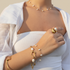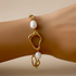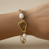 צמיד אושן משולב מחוליות זהב רחבות עם פנינים מתורבות אמיתיות בסגנון בארוק.