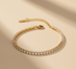 צמיד טניס אלגנטי בעיצוב קלאסי, עשוי חוליות זהב דקיקות המשובצות באבני זירקוניה לבנות מלוטשות לכל אורכו.