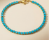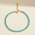 צמיד טניס בעיצוב קלאסי ונקי, עשוי חוליות זהב דקות המשובצות באבני זירקוניה טורקיז עגולות לכל אורכו.