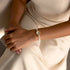 רצועת פנינים עדינה ולוח עגול מוזהב משובץ אבני זירקון מעניקים לו נוכחות על־זמנית שמשדרגת כל לוק. פריט קלאסי.