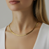 שרשרת גל היא שרשרת שטוחה וגמישה בעיצוב נקי ומדויק. המבנה השטוח שלה יושב על הצוואר כמו גל של אור, ומשלב מראה עדין וזוהר שמתאים לכל יום.
